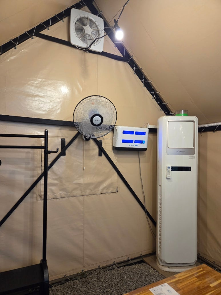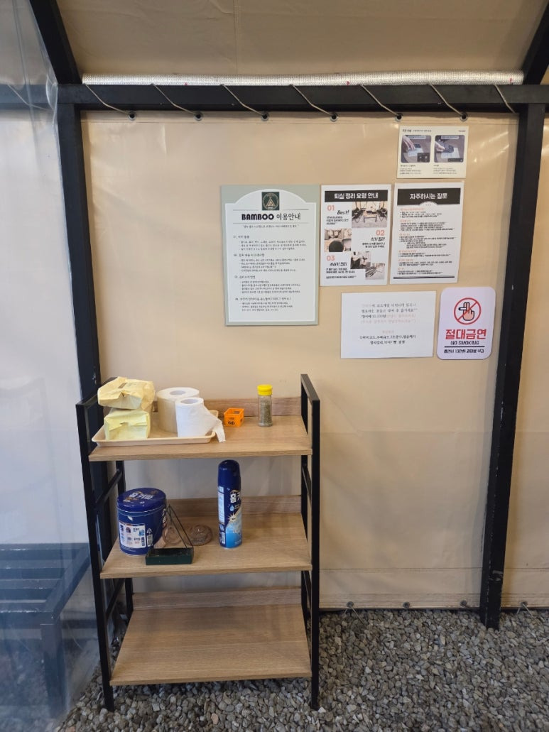 텐트안에 여름에는 벌레나 모기가 나올수있으니 모기향과 에프킬라가 있고 휴지 물티슈도 있었어요