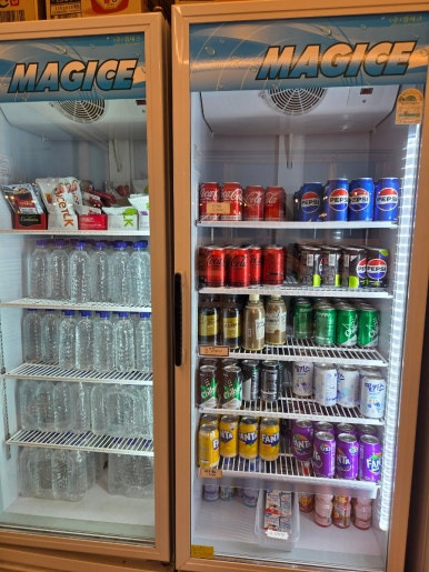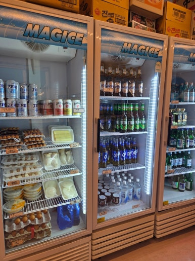 냉장고에는 물과 갖은 음료 그리거 소시지 양파 치즈 버섯 계란등등이 있고 물론 맥주 소주도여