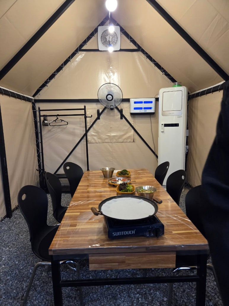 비오는날 갬성있게 캠핑 느낌으로 지인들과 즐거운시간보냈습니다 딱 저희끼리있고 신나게 웃고 떠들수도있어서 너무 좋았고 분위기도 좋았어여 최고 ~