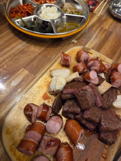 빗소리들으면서 맛있는 고기까지 구워주니 얼마나 낭만있고 운치있고 좋을수가...